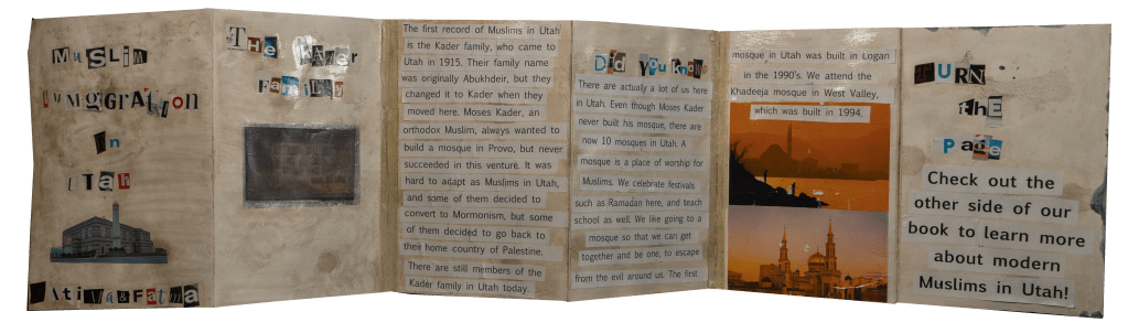 This zine is the result of the search for the history of Muslim migration in Utah. The earliest records of that history are that of the Kader family, summarized in one side of the zine. On the other, the scholars added their own stories to the history of Utah
